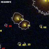 Object #618 x,y = (3028, 1985) RA, Dec = (08:42:56.616, 36:21:20.52) = (130.73590, 36.35570) BPZ = 0.252 [0.203--0.353] type = 4.80 (ES0_B10 - Ell4_A_0) chisq2 = 0.05 ODDS = 0.81 z_cluster = 0.282
