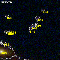 Object #646 x,y = (3509, 1953) RA, Dec = (08:42:54.216, 36:21:18.72) = (130.72590, 36.35520) BPZ = 1.300 [0.396--2.888] type = 7.50 (SB1_B10 - Scd_B10) chisq2 = 0.05 ODDS = 0.15 z_cluster = 0.282