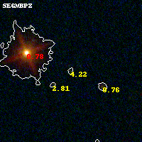 Black segments are analyzed here. Roll mouse over color images to view segments. Best viewed in a wide browser window (1200 pixels or more). Download SED & P(z) plots to view larger versions.