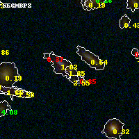 Black segments are analyzed here. Roll mouse over color images to view segments. Best viewed in a wide browser window (1200 pixels or more). Download SED & P(z) plots to view larger versions.