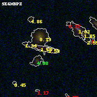 Black segments are analyzed here. Roll mouse over color images to view segments. Best viewed in a wide browser window (1200 pixels or more). Download SED & P(z) plots to view larger versions.