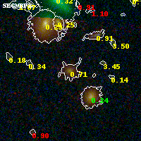 Object #1540 x,y = (2776, 3449) RA, Dec = (02:45:27.696, -53:01:30.36) = (41.36540, -53.02510) BPZ = 0.706 [0.570--0.817] type = 8.00 (SB1_B10) chisq2 = 0.10 ODDS = 0.70 z_cluster = 0.300