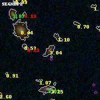 Object #1636 x,y = (1970, 3377) RA, Dec = (02:45:33.048, -53:01:34.68) = (41.38770, -53.02630) BPZ = 3.045 [2.848--3.197] type = 8.40 (SB1_B10 - SB2_B10) chisq2 = 0.19 ODDS = 0.94 z_cluster = 0.300