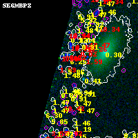 Object #168 x,y = (1198, 4449) RA, Dec = (02:45:38.184, -53:00:-30.24) = (41.40910, -53.00840) BPZ = 5.861 [2.540--8.502] type = 8.80 (SB2_B10 - SB1_B10) chisq2 = 0.02 ODDS = 0.32 z_cluster = 0.300