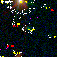 Object #3228 x,y = (3498, 2557) RA, Dec = (02:45:22.896, -53:02:23.64) = (41.34540, -53.03990) BPZ = 0.580 [0.444--2.674] type = 7.30 (Scd_B10 - SB1_B10) chisq2 = 0.00 ODDS = 0.63 z_cluster = 0.300
