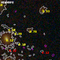 Object #3818 x,y = (1807, 2282) RA, Dec = (02:45:34.128, -53:02:40.20) = (41.39220, -53.04450) BPZ = 0.775 [0.602--4.320] type = 8.80 (SB2_B10 - SB1_B10) chisq2 = 0.71 ODDS = 0.38 z_cluster = 0.300