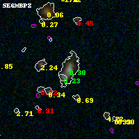 Object #3882 x,y = (3014, 2229) RA, Dec = (02:45:26.112, -53:02:43.44) = (41.35880, -53.04540) BPZ = 0.301 [0.267--0.346] type = 9.50 (SB3_B10 - SB2_B10) chisq2 = 0.15 ODDS = 0.98 z_cluster = 0.300