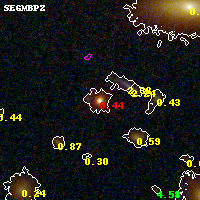 Object #4951 x,y = (1482, 1654) RA, Dec = (02:45:36.312, -53:03:18.00) = (41.40130, -53.05500) BPZ = 0.437 [0.341--0.458] type = 4.00 (Ell4_A_0) chisq2 = 1.53 ODDS = 0.90 z_cluster = 0.300