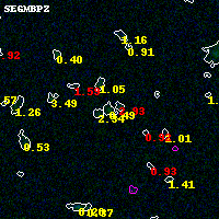 Object #6107 x,y = (2330, 941) RA, Dec = (02:45:30.648, -53:04:00.84) = (41.37770, -53.06690) BPZ = 0.487 [0.061--3.323] type = 7.70 (SB1_B10 - Scd_B10) chisq2 = 0.01 ODDS = 0.16 z_cluster = 0.300