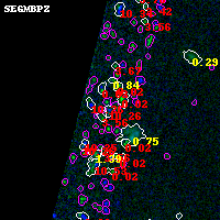 Black segments are analyzed here. Roll mouse over color images to view segments. Best viewed in a wide browser window (1200 pixels or more). Download SED & P(z) plots to view larger versions.