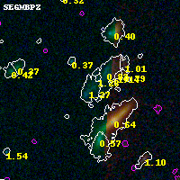 Black segments are analyzed here. Roll mouse over color images to view segments. Best viewed in a wide browser window (1200 pixels or more). Download SED & P(z) plots to view larger versions.