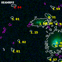 Black segments are analyzed here. Roll mouse over color images to view segments. Best viewed in a wide browser window (1200 pixels or more). Download SED & P(z) plots to view larger versions.