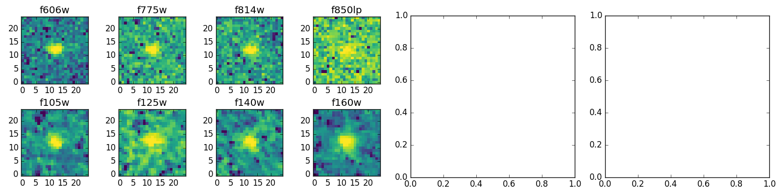 Black segments are analyzed here. Roll mouse over color images to view segments. Best viewed in a wide browser window (1200 pixels or more). Download SED & P(z) plots to view larger versions.