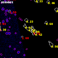 Object #15432 x,y = (5358, 5298) RA, Dec = (01:02:46.296, -49:14:03.84) = (15.69290, -49.23440) BPZ = 0.515 [0.091--4.178] type = 8.10 (SB1_B10 - SB2_B10) chisq2 = 0.18 ODDS = 0.26 z_cluster = 0.870