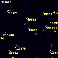 Object #15678 x,y = (3036, 5235) RA, Dec = (01:03:00.504, -49:14:07.44) = (15.75210, -49.23540) BPZ = 3.582 [0.167--3.985] type = 9.80 (SB3_B10 - SB2_B10) chisq2 = 0.21 ODDS = 0.27 z_cluster = 0.870