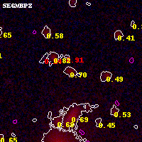 Object #17289 x,y = (4573, 4654) RA, Dec = (01:02:51.096, -49:14:42.36) = (15.71290, -49.24510) BPZ = 0.700 [0.592--0.959] type = 5.60 (Sbc_B10 - ES0_B10) chisq2 = 0.12 ODDS = 0.49 z_cluster = 0.870