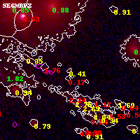 Object #18869 x,y = (4282, 4100) RA, Dec = (01:02:52.872, -49:15:15.84) = (15.72030, -49.25440) BPZ = 0.415 [0.168--4.265] type = 6.30 (Sbc_B10 - Scd_B10) chisq2 = 0.21 ODDS = 0.13 z_cluster = 0.870
