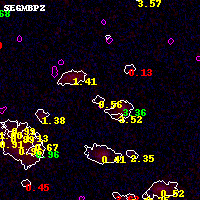 Object #4511 x,y = (3868, 2257) RA, Dec = (01:02:55.416, -49:17:06.36) = (15.73090, -49.28510) BPZ = 0.565 [0.108--3.667] type = 9.90 (SB3_B10 - SB2_B10) chisq2 = 0.67 ODDS = 0.31 z_cluster = 0.870