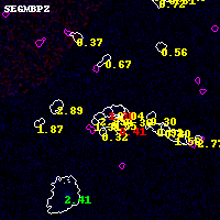 Object #6628 x,y = (4773, 2921) RA, Dec = (01:02:49.872, -49:16:26.40) = (15.70780, -49.27400) BPZ = 1.305 [0.534--2.456] type = 8.10 (SB1_B10 - SB2_B10) chisq2 = 1.02 ODDS = 0.49 z_cluster = 0.870