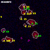 Object #6920 x,y = (2769, 3039) RA, Dec = (01:03:02.160, -49:16:19.20) = (15.75900, -49.27200) BPZ = 0.332 [0.194--1.006] type = 2.50 (Ell5_A_0 - Ell6_A_0) chisq2 = 0.64 ODDS = 0.37 z_cluster = 0.870