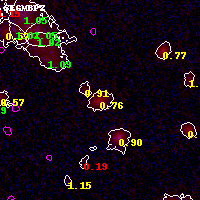 Object #9423 x,y = (4170, 3900) RA, Dec = (01:02:53.568, -49:15:27.72) = (15.72320, -49.25770) BPZ = 0.763 [0.575--0.856] type = 5.90 (Sbc_B10 - ES0_B10) chisq2 = 0.11 ODDS = 0.57 z_cluster = 0.870