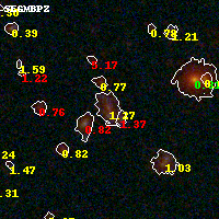 Object #1790 x,y = (3063, 3130) RA, Dec = (01:03:00.360, -49:16:13.80) = (15.75150, -49.27050) BPZ = 1.275 [1.189--1.490] type = 9.10 (SB2_B10 - SB3_B10) chisq2 = 0.05 ODDS = 0.78 z_cluster = 0.870