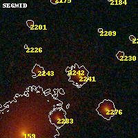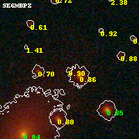 Object #2242 x,y = (3072, 2591) RA, Dec = (01:03:00.288, -49:16:46.20) = (15.75120, -49.27950) BPZ = 0.897 [0.361--5.702] type = 7.10 (Scd_B10 - SB1_B10) chisq2 = 0.64 ODDS = 0.12 z_cluster = 0.870