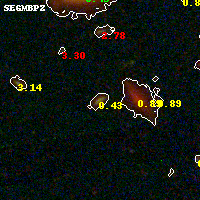 Object #2373 x,y = (3972, 2390) RA, Dec = (01:02:54.768, -49:16:58.44) = (15.72820, -49.28290) BPZ = 0.426 [0.252--3.570] type = 8.30 (SB1_B10 - SB2_B10) chisq2 = 0.39 ODDS = 0.43 z_cluster = 0.870
