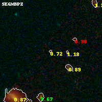 Object #528 x,y = (2878, 4529) RA, Dec = (01:03:01.488, -49:14:49.92) = (15.75620, -49.24720) BPZ = 0.724 [0.188--4.004] type = 8.80 (SB2_B10 - SB1_B10) chisq2 = 0.87 ODDS = 0.14 z_cluster = 0.870