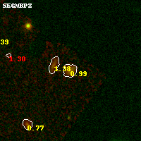 Object #535 x,y = (5817, 4565) RA, Dec = (01:02:43.464, -49:14:47.76) = (15.68110, -49.24660) BPZ = 0.990 [0.639--1.043] type = 8.50 (SB2_B10 - SB1_B10) chisq2 = 0.00 ODDS = 0.66 z_cluster = 0.870