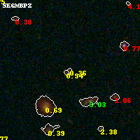 Object #729 x,y = (3052, 4317) RA, Dec = (01:03:00.408, -49:15:02.52) = (15.75170, -49.25070) BPZ = 0.359 [0.206--3.870] type = 9.20 (SB2_B10 - SB3_B10) chisq2 = 0.79 ODDS = 0.10 z_cluster = 0.870