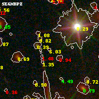 Object #773 x,y = (4011, 4281) RA, Dec = (01:02:54.552, -49:15:04.68) = (15.72730, -49.25130) BPZ = 6.031 [0.813--7.444] type = 8.20 (SB1_B10 - SB2_B10) chisq2 = 0.76 ODDS = 0.29 z_cluster = 0.870