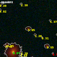 Object #885 x,y = (3121, 4146) RA, Dec = (01:03:00.000, -49:15:12.96) = (15.75000, -49.25360) BPZ = 5.047 [4.603--5.184] type = 7.70 (SB1_B10 - Scd_B10) chisq2 = 0.27 ODDS = 0.83 z_cluster = 0.870
