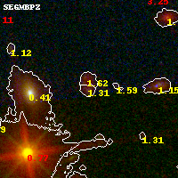 Object #91 x,y = (3600, 2040) RA, Dec = (01:02:57.048, -49:17:19.32) = (15.73770, -49.28870) BPZ = 1.309 [1.115--1.595] type = 7.00 (Scd_B10) chisq2 = 0.08 ODDS = 0.59 z_cluster = 0.870