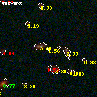 Object #952 x,y = (4654, 4070) RA, Dec = (01:02:50.592, -49:15:17.64) = (15.71080, -49.25490) BPZ = 1.557 [0.219--3.173] type = 10.20 (SB3_B10 - SB11_A_0_l) chisq2 = 0.87 ODDS = 0.12 z_cluster = 0.870