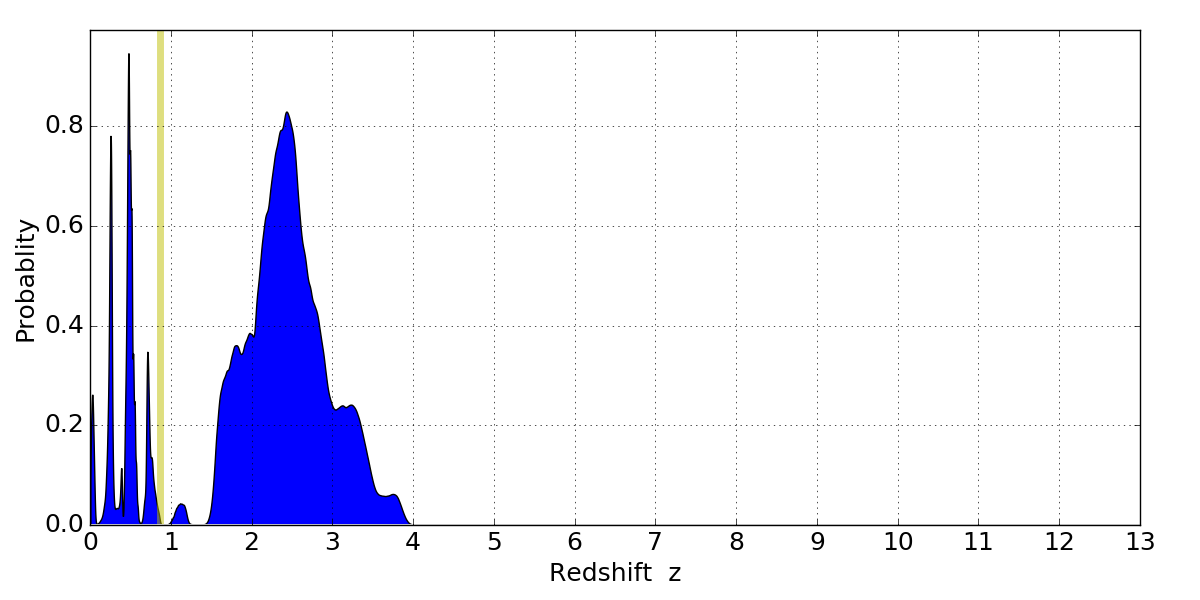 Black segments are analyzed here. Roll mouse over color images to view segments. Best viewed in a wide browser window (1200 pixels or more). Download SED & P(z) plots to view larger versions.