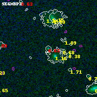 Black segments are analyzed here. Roll mouse over color images to view segments. Best viewed in a wide browser window (1200 pixels or more). Download SED & P(z) plots to view larger versions.