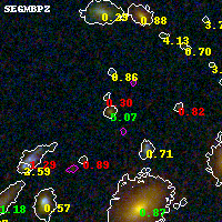 Black segments are analyzed here. Roll mouse over color images to view segments. Best viewed in a wide browser window (1200 pixels or more). Download SED & P(z) plots to view larger versions.