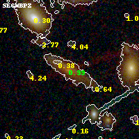 Object #1033 x,y = (2564, 3205) RA, Dec = (00:25:29.664, -12:22:12.00) = (6.37360, -12.37000) BPZ = 0.988 [0.916--1.048] type = 6.00 (Sbc_B10) chisq2 = 0.07 ODDS = 0.98 z_cluster = 0.586