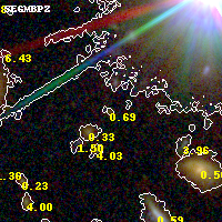 Object #1079 x,y = (2763, 3186) RA, Dec = (00:25:28.848, -12:22:13.08) = (6.37020, -12.37030) BPZ = 0.690 [0.331--4.667] type = 9.00 (SB2_B10) chisq2 = 0.44 ODDS = 0.13 z_cluster = 0.586