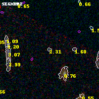 Object #1223 x,y = (3630, 3089) RA, Dec = (00:25:25.296, -12:22:19.20) = (6.35540, -12.37200) BPZ = 2.313 [1.156--3.242] type = 11.00 (SB11_A_0_l) chisq2 = 0.10 ODDS = 0.19 z_cluster = 0.586