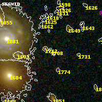 Object #1708 x,y = (1780, 2695) RA, Dec = (00:25:32.880, -12:22:42.60) = (6.38700, -12.37850) BPZ = 0.362 [0.119--3.697] type = 10.90 (SB11_A_0_l - SB3_B10) chisq2 = 0.24 ODDS = 0.10 z_cluster = 0.586