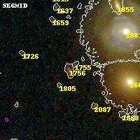 Object #1756 x,y = (1612, 2664) RA, Dec = (00:25:33.552, -12:22:44.40) = (6.38980, -12.37900) BPZ = 1.803 [1.435--2.001] type = 8.40 (SB1_B10 - SB2_B10) chisq2 = 0.07 ODDS = 0.49 z_cluster = 0.586