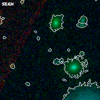 Object #1808 x,y = (3908, 2640) RA, Dec = (00:25:24.144, -12:22:45.84) = (6.35060, -12.37940) BPZ = 2.047 [0.168--3.550] type = 8.50 (SB2_B10 - SB1_B10) chisq2 = 0.00 ODDS = 0.10 z_cluster = 0.586
