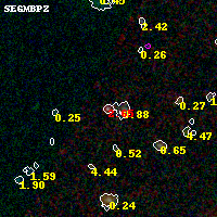 Object #1822 x,y = (1236, 2778) RA, Dec = (00:25:35.088, -12:22:37.56) = (6.39620, -12.37710) BPZ = 2.645 [2.449--2.980] type = 6.40 (Sbc_B10 - Scd_B10) chisq2 = 1.15 ODDS = 0.71 z_cluster = 0.586