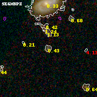 Object #1938 x,y = (1165, 2542) RA, Dec = (00:25:35.376, -12:22:51.96) = (6.39740, -12.38110) BPZ = 0.429 [0.125--3.532] type = 8.80 (SB2_B10 - SB1_B10) chisq2 = 0.00 ODDS = 0.07 z_cluster = 0.586