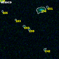 Object #199 x,y = (2774, 4208) RA, Dec = (00:25:28.800, -12:21:11.88) = (6.37000, -12.35330) BPZ = 2.018 [0.141--3.448] type = 9.00 (SB2_B10) chisq2 = 0.00 ODDS = 0.10 z_cluster = 0.586