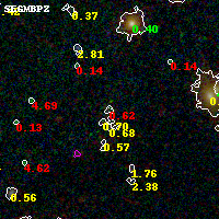 Object #2080 x,y = (2453, 2449) RA, Dec = (00:25:30.120, -12:22:57.36) = (6.37550, -12.38260) BPZ = 0.622 [0.184--4.507] type = 10.30 (SB3_B10 - SB11_A_0_l) chisq2 = 1.68 ODDS = 0.11 z_cluster = 0.586