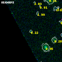 Object #2105 x,y = (662, 2434) RA, Dec = (00:25:37.440, -12:22:58.44) = (6.40600, -12.38290) BPZ = 0.220 [0.141--3.867] type = 3.10 (Ell5_A_0 - Ell4_A_0) chisq2 = 0.01 ODDS = 0.09 z_cluster = 0.586