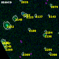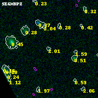 Object #2180 x,y = (785, 2368) RA, Dec = (00:25:36.936, -12:23:02.40) = (6.40390, -12.38400) BPZ = 2.010 [0.159--3.455] type = 9.20 (SB2_B10 - SB3_B10) chisq2 = 0.00 ODDS = 0.10 z_cluster = 0.586